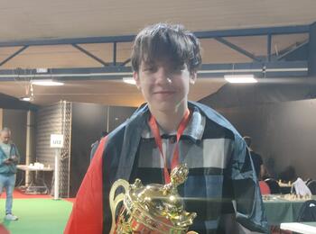 Korchynskyi spielt in der zweiten Bundesliga für den SV Erkenschwick. Im Team ist er der stärkste Deutsche – und zuletzt auch der einzige in den ersten beiden Ligarunden – umgeben von Niederländern und Letten. Er holte 1,5 Punkte aus seinen ersten beiden Begegnungen. „Auch die Performance auf diesem Niveau im Erwachsenenbereich zeigt, dass da jede Menge Entwicklungspotenzial ist“, so Vökler. Nach dem Gewinn der Goldmedaille stellte DSB-Delegationsleiter Philipp Müller ihm einige Fragen.