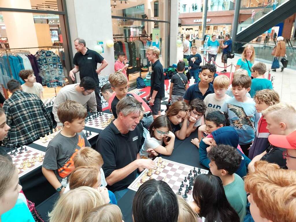 Der Essener Großmeister Sebastian Siebrecht tourt wieder durch die größten deutschen Einkaufszentren, um den Schachsport publikumswirksam zu präsentieren und viele für den Denksport zu begeistern.